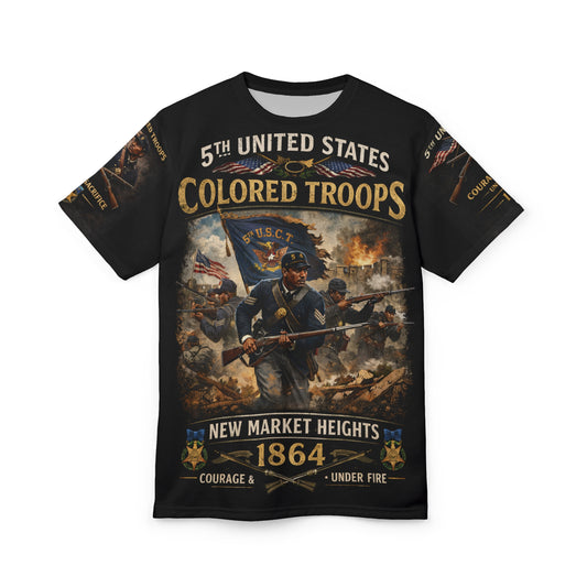 5th U.S. Colored Troops All‑Over Print Tee — Courage Under Fire (Battle of New Market Heights)