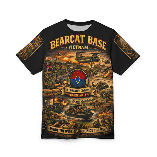 9th Infantry Division "Old Reliables" All‑Over Print Tee — Bearcat Base Vietnam