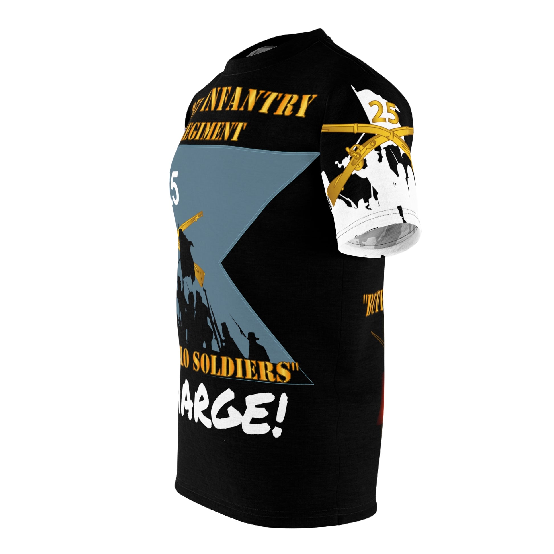 AOP - Army - 25th Infantry Regiment on Guidon with Bayonet Charge - "Buffalo Soldiers" .: 100% Polyester .: Light fabric (4.0 oz/yd² (113 g/m²)) / (6.0 oz/yd² (170 g/m²)) .: Regular fit .: Runs true to size