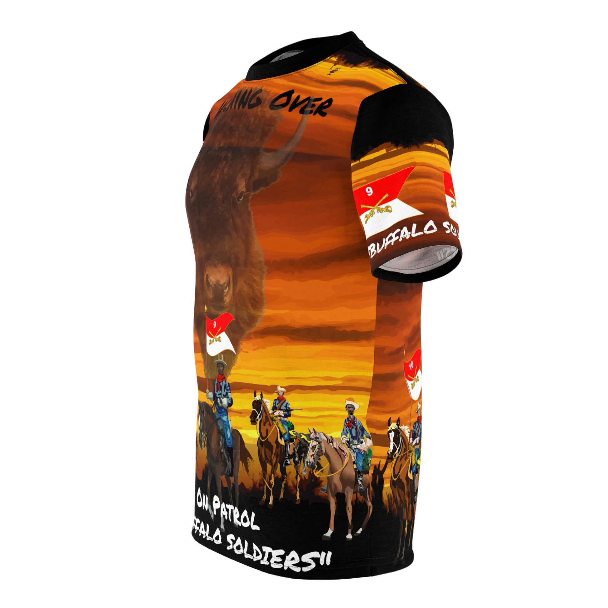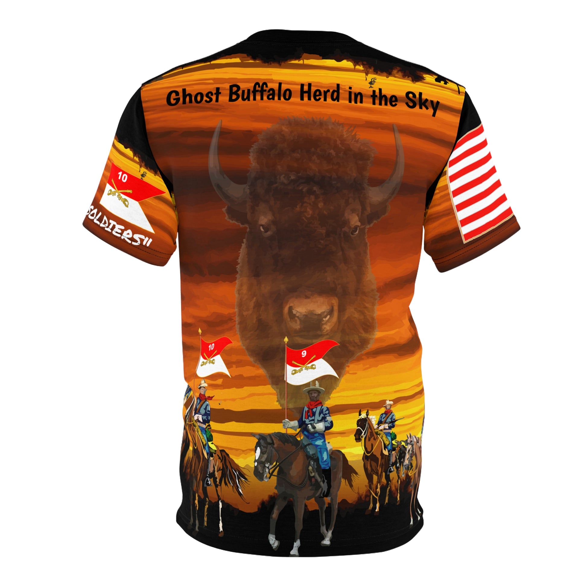 AOP - Army - "Buffalo Soldiers" On Patrol in the Old West with Ghost Buffalo on Overwatch - 9th and 10th Cavalry Regiments .: 100% Polyester .: Light fabric (6.0 oz/yd² (170 g/m²)) .: Regular fit .: Runs true to size
