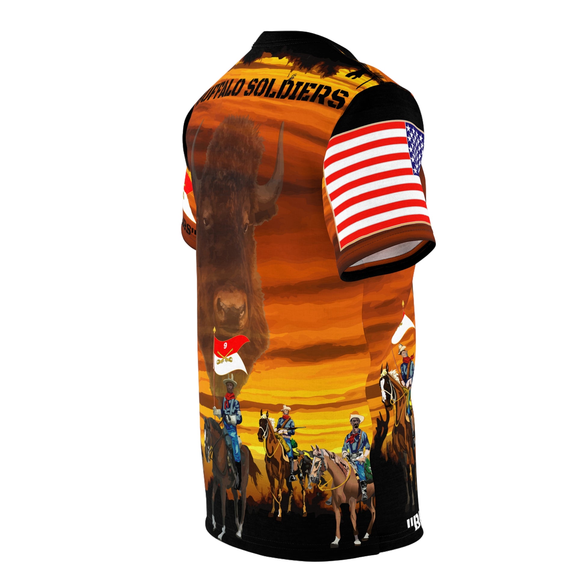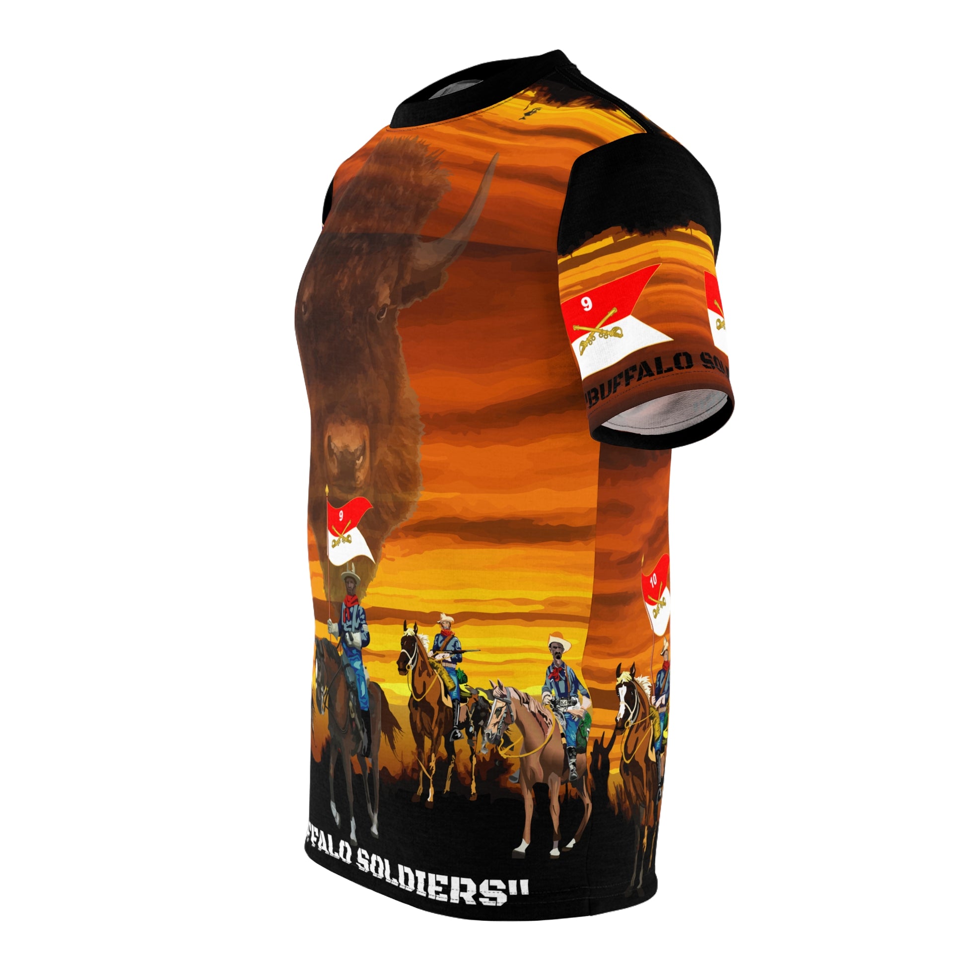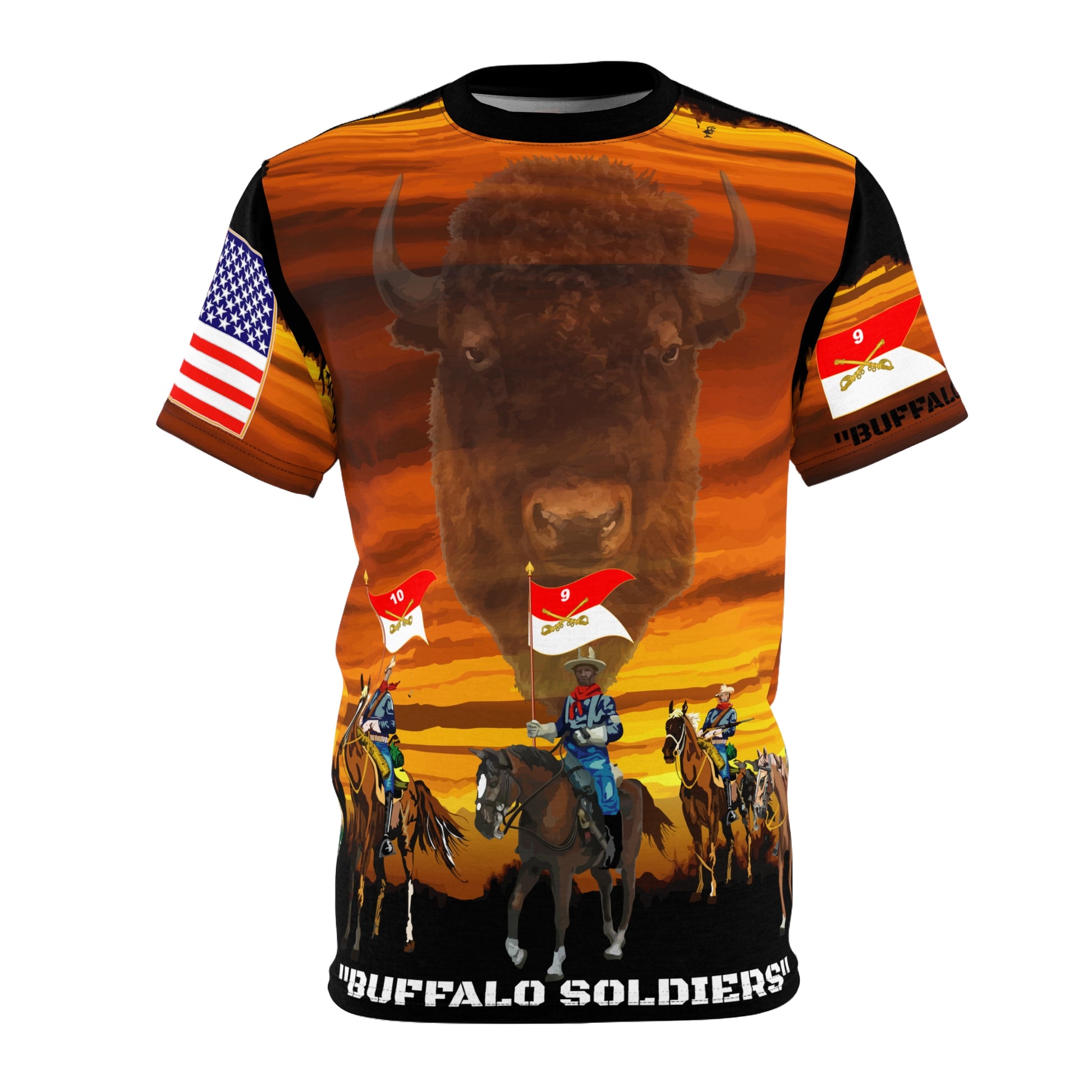AOP - Army - "Buffalo Soldiers" On Patrol in the Old West with Ghost Buffalo on Overwatch - 9th and 10th Cavalry Regiments .: 100% Polyester .: Light fabric (6.0 oz/yd² (170 g/m²)) .: Regular fit .: Runs true to size