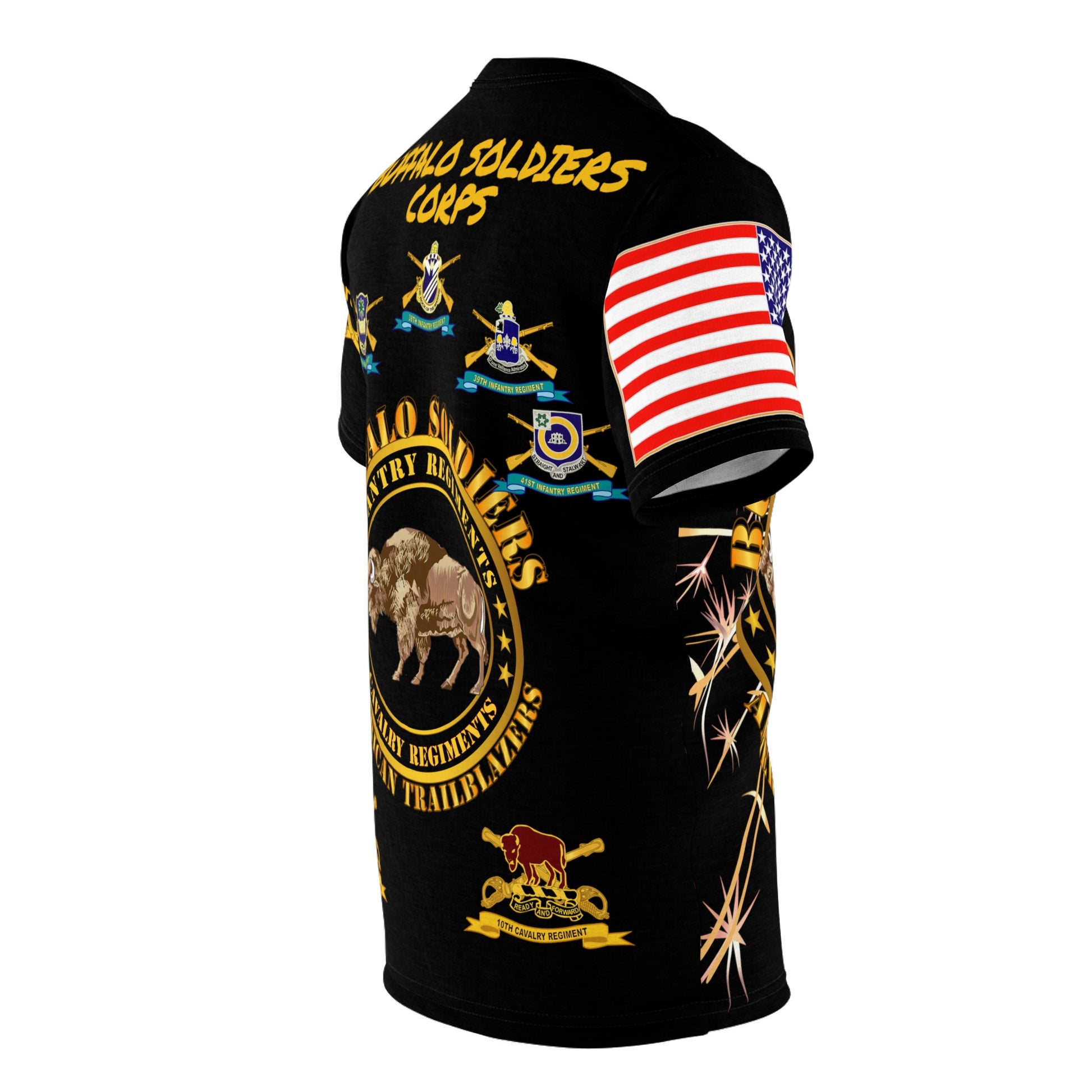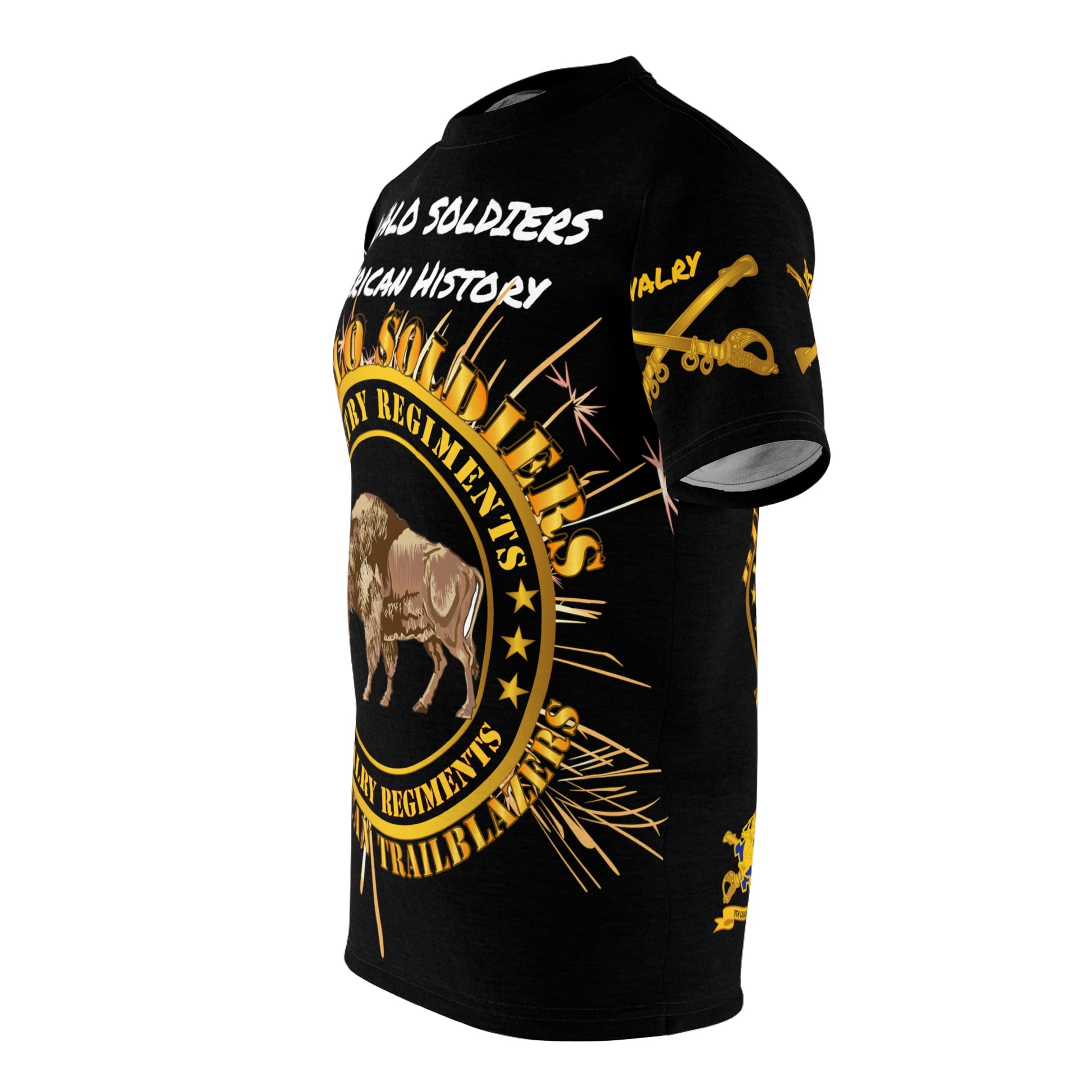AOP - Army - Cavalry and Infantry Regiments of the "Buffalo Soldiers" - American History .: 100% Polyester .: Light fabric (6.0 oz/yd² (170 g/m²)) .: Regular fit .: Runs true to size