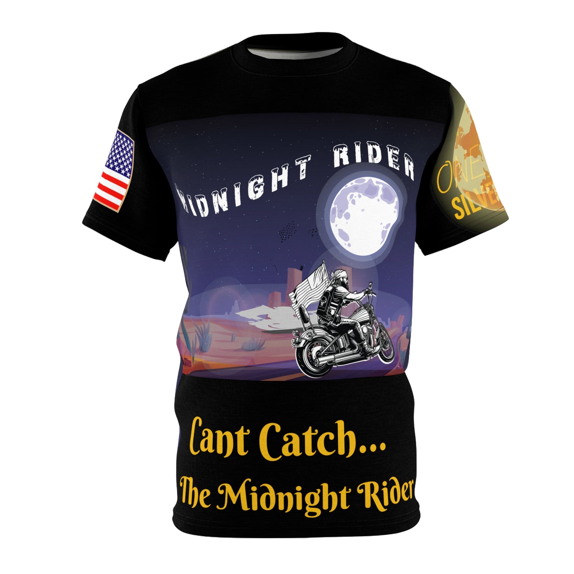 AOP - Midnight Rider - Can't Catch the Midnight Rider - Desert Moon .: 100% Polyester .: Light fabric (4.0 oz/yd² (113 g/m²)) / (6.0 oz/yd² (170 g/m²)) .: Regular fit .: Runs true to size