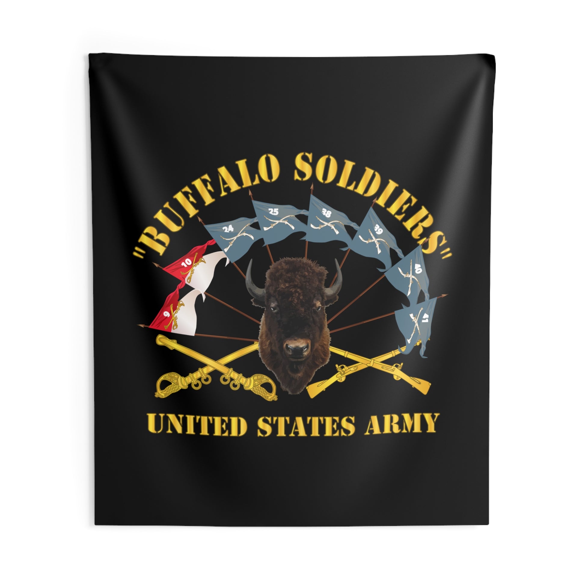 Indoor Wall Tapestries - Army - Buffalo Soldiers - Infantry - Cavalry Guidons w Buffalo Head - US Army X 300