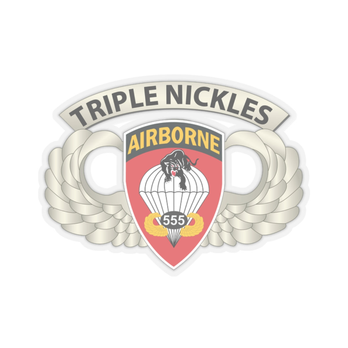 Kiss-Cut Stickers - Army - Airborne Badge - 555th Parachute Infantry Bn - SSI w Triple NicklesTab X 300