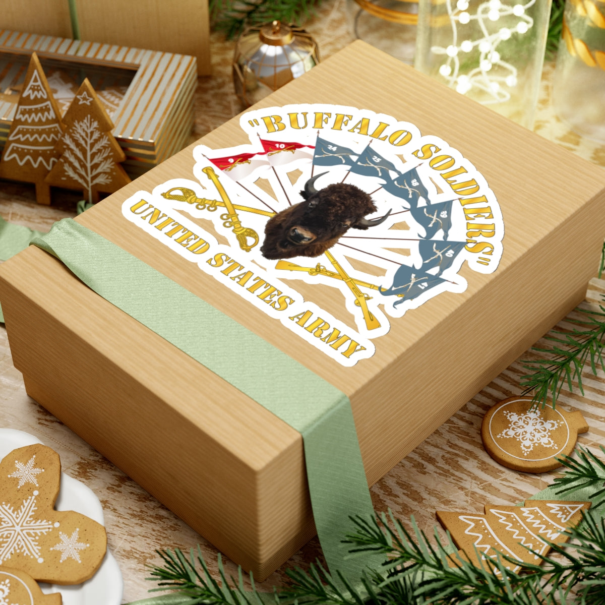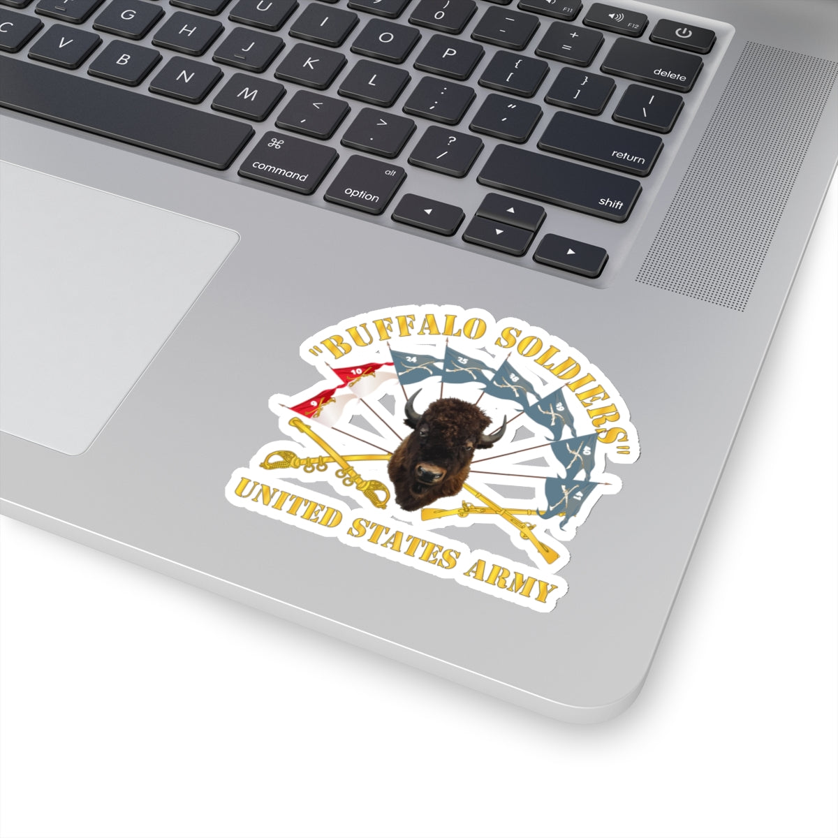 Kiss-Cut Stickers - Army - Buffalo Soldiers - Infantry - Cavalry Guidons w Buffalo Head - US Army X 300