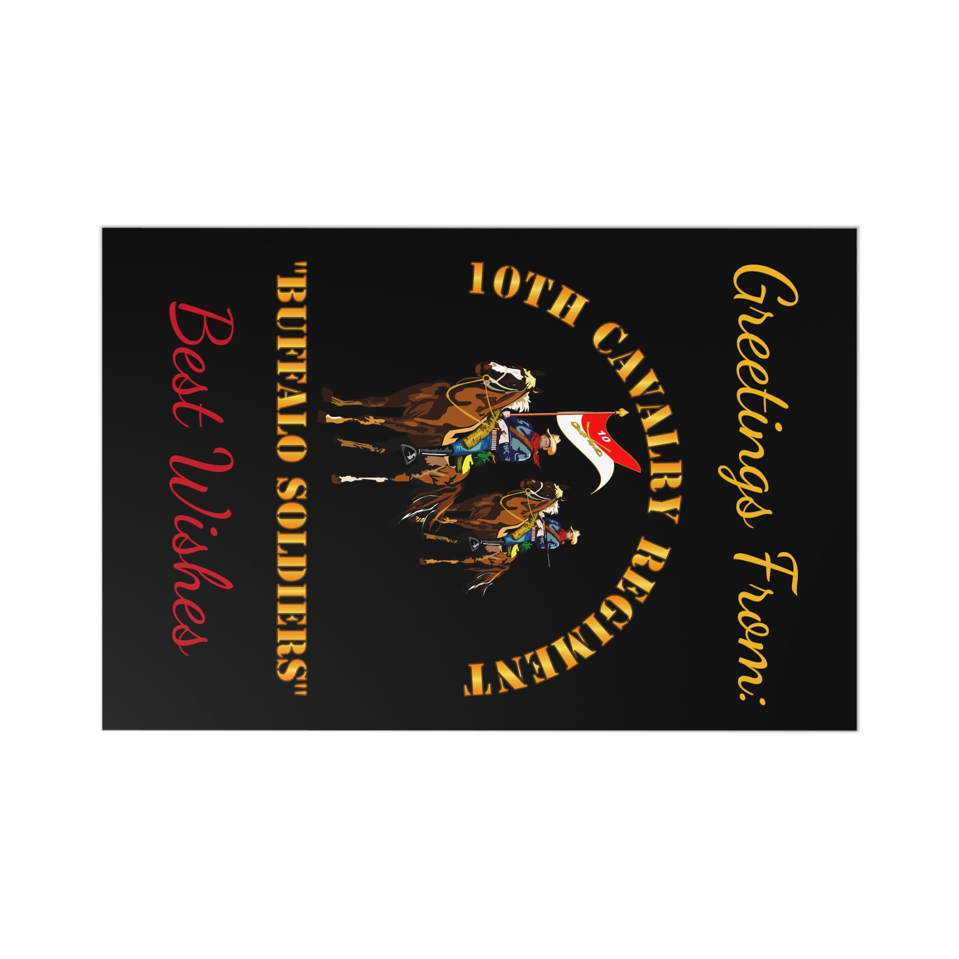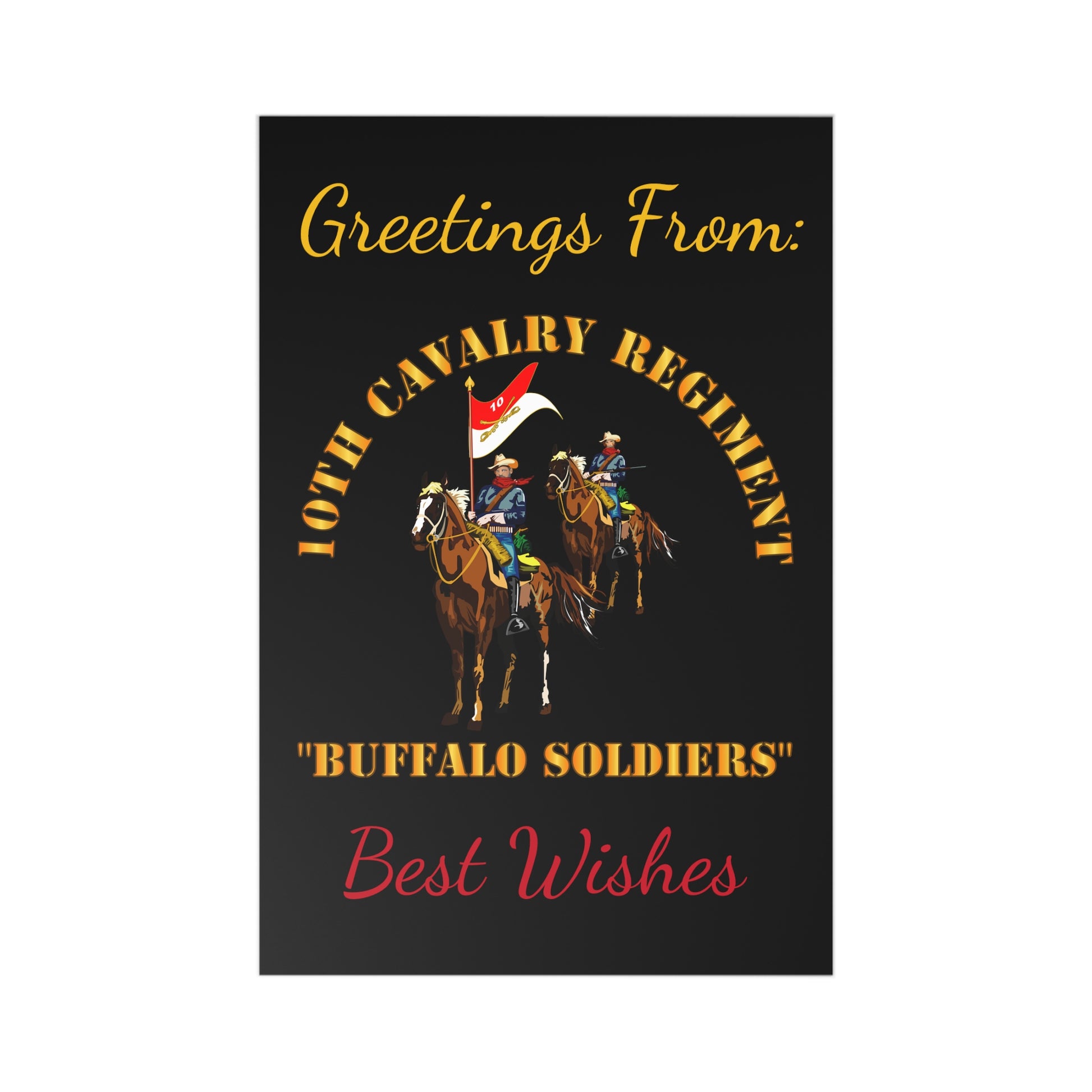 Postcards (7 pcs) - Greetings from: 10th Cavalry Regiment w Cavalrymen "BUFFALO SOLDIERS" - Best Wishes Create memories from your travels with this 7-piece postcard set. They come in Black with a matte finish. Craft paper envelopes are included to make it easier to send them while you continue your adventures around the world. .: Matte finish .: 7 pieces per order .: Craft paper envelopes included