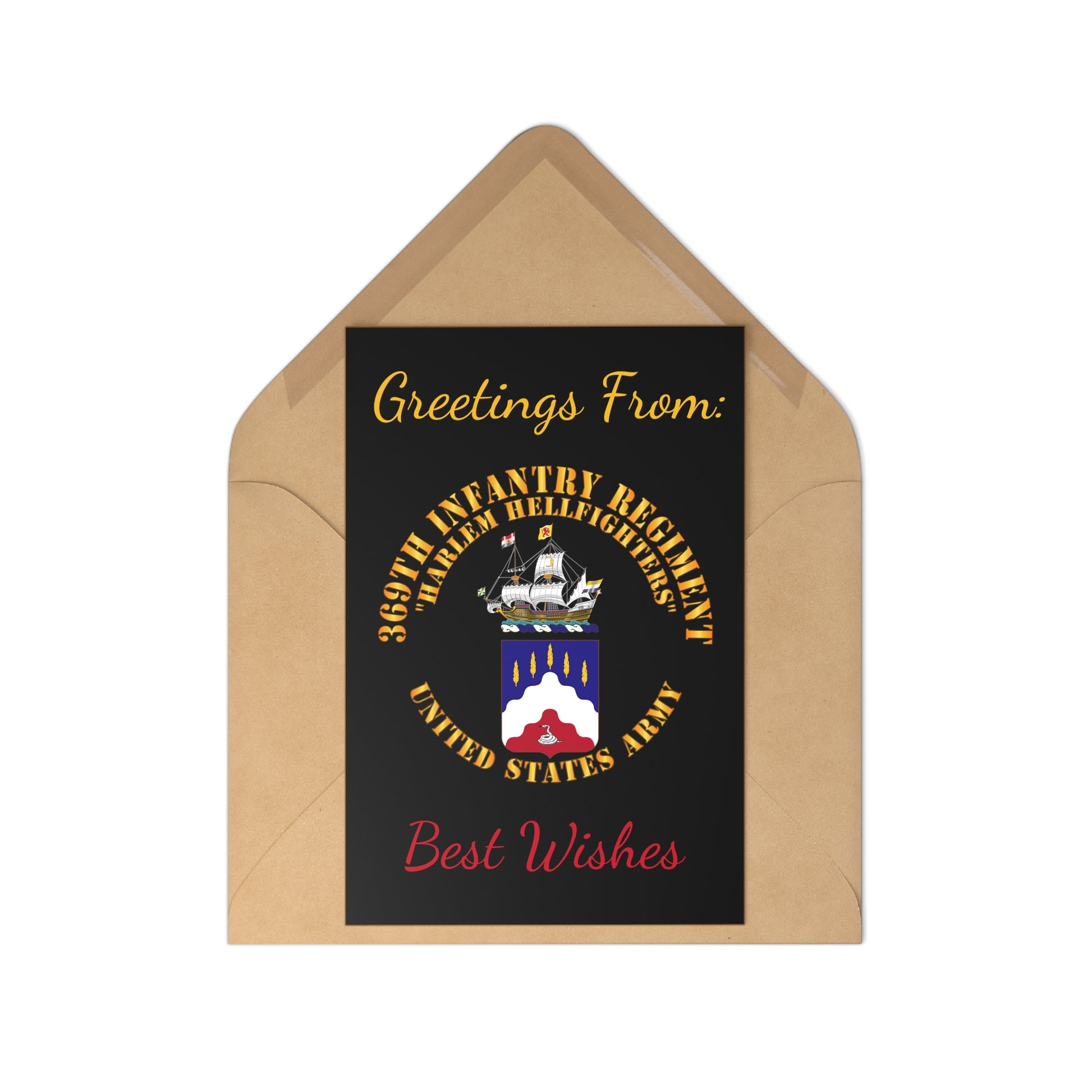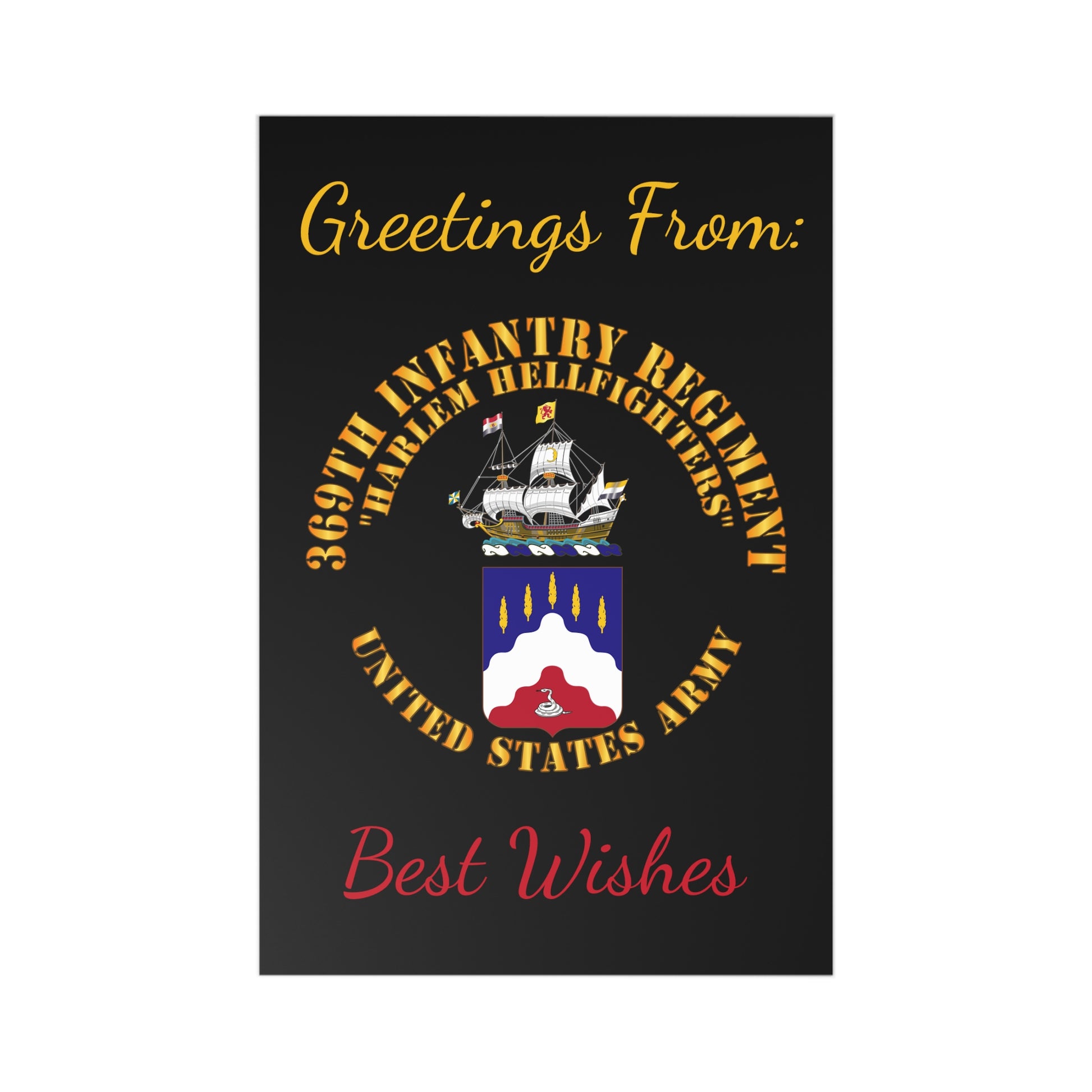 Postcards (7 pcs) - Greetings from: 369th Infantry Regiment "Harlem Hellfighters" - Best Wishes Create memories from your travels with this 7-piece postcard set. They come in Black with a matte finish. Craft paper envelopes are included to make it easier to send them while you continue your adventures around the world. .: Matte finish .: 7 pieces per order .: Craft paper envelopes included
