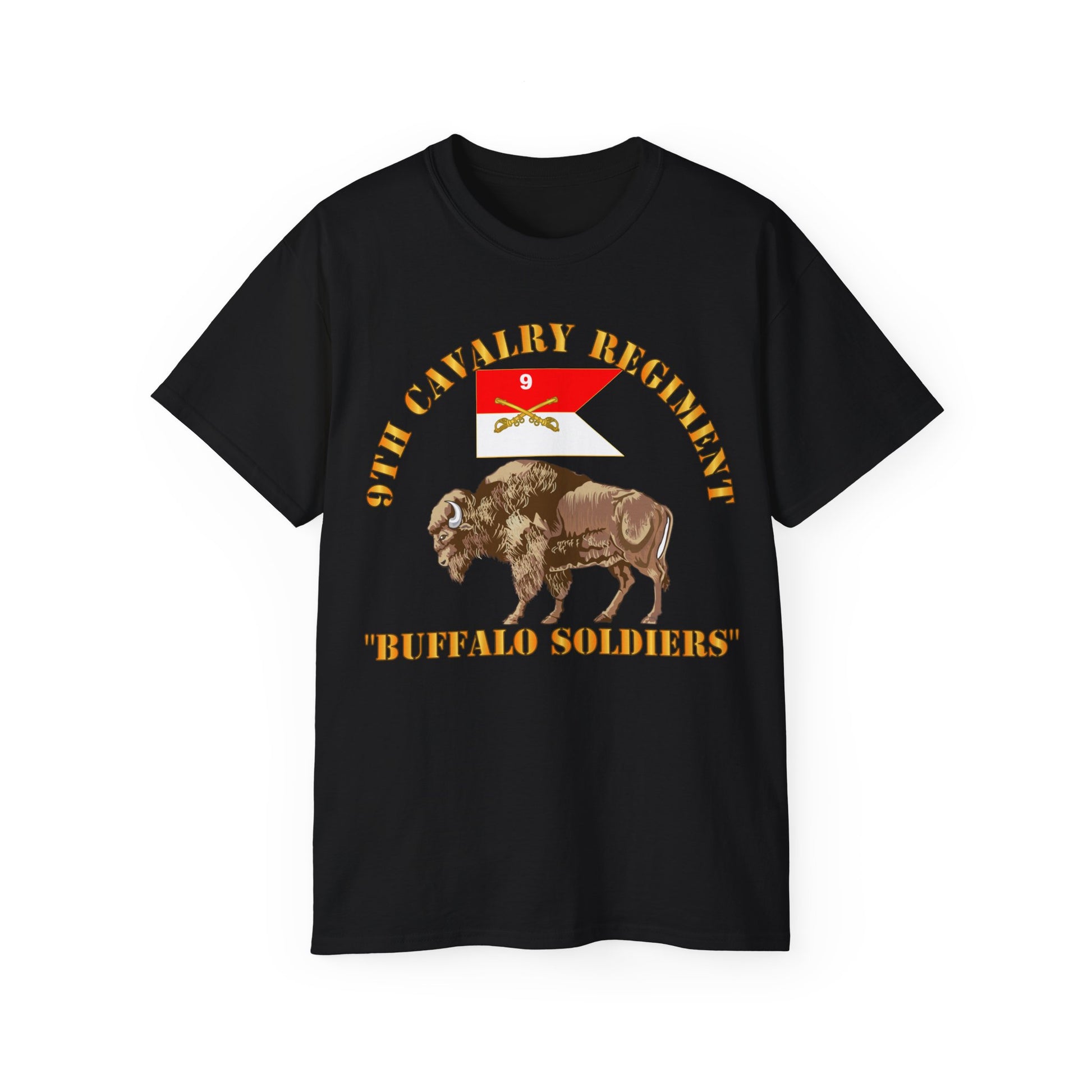 Unisex Ultra Cotton Tee - 9th Cavalry Regiment - Buffalo Soldiers w 9th Cav Guidon