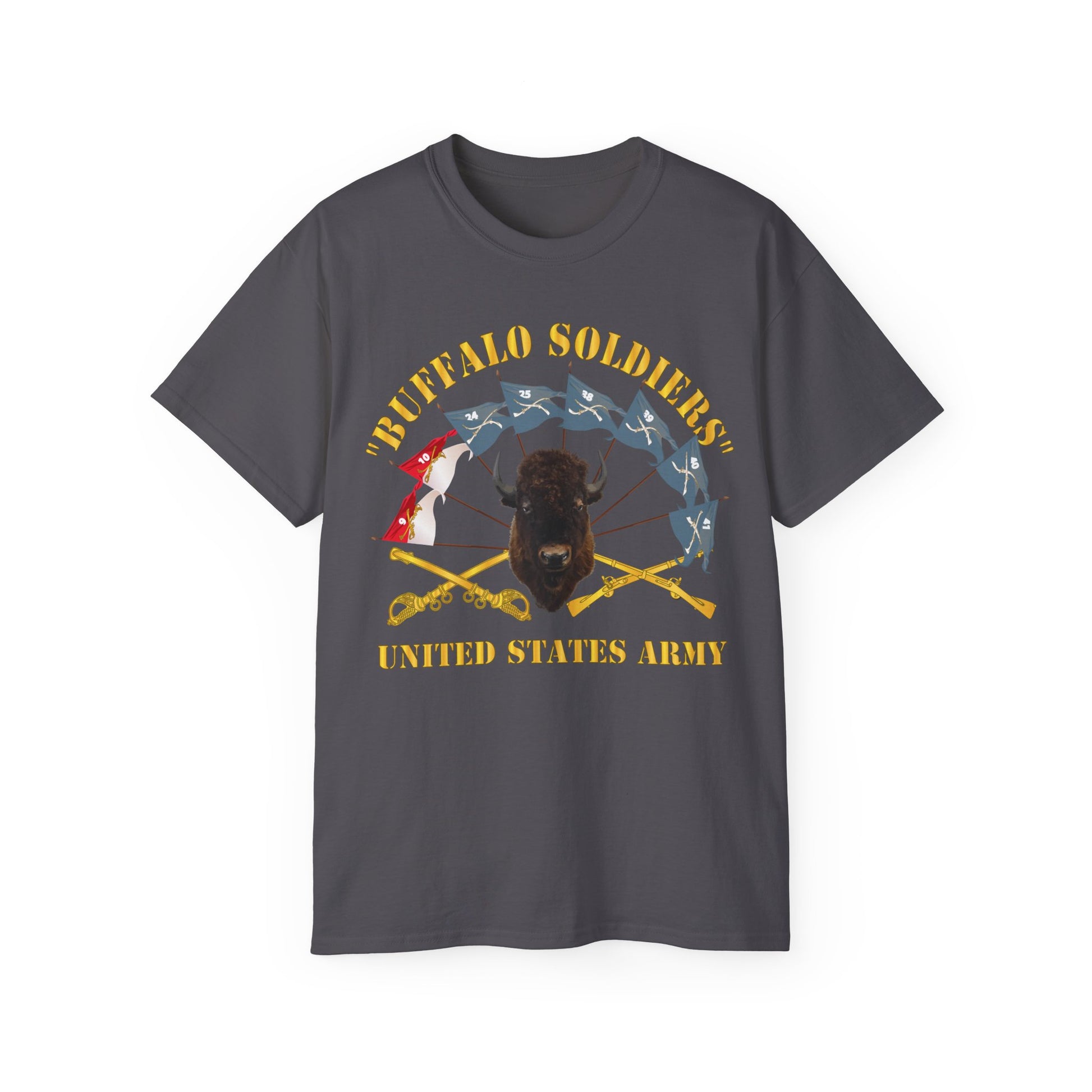 Unisex Ultra Cotton Tee - Buffalo Soldiers - Infantry - Cavalry Guidons w Buffalo Head - US Army X 300